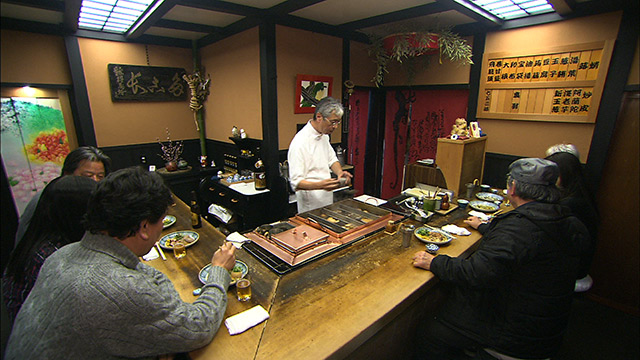 明治15年創業。老舗のおでん屋、蛸長。ご主人こだわりのおでんを求め、京都の食通たちも足しげく通っている。季節によっておでんの具材は変わる。