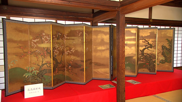 歴代天皇から賜った調度品など寺宝が展示される