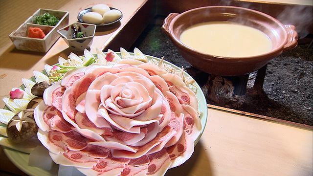 1918年創業 「ぼたん鍋」の元祖と言えるお店。見事に飾り付けられた猪肉は崩すのがもったいなくなってしまいます。
