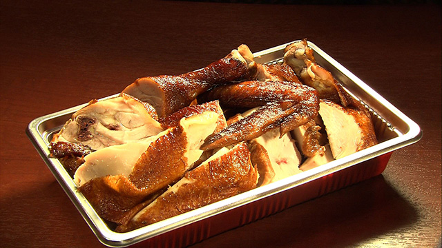 名物は鶏を丸々揚げた焼鳥と呼ばれる中国のローストチキン