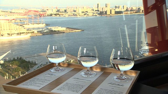 世界初の回転清酒ラウンジで灘の26の酒蔵から集めた日本酒が揃う