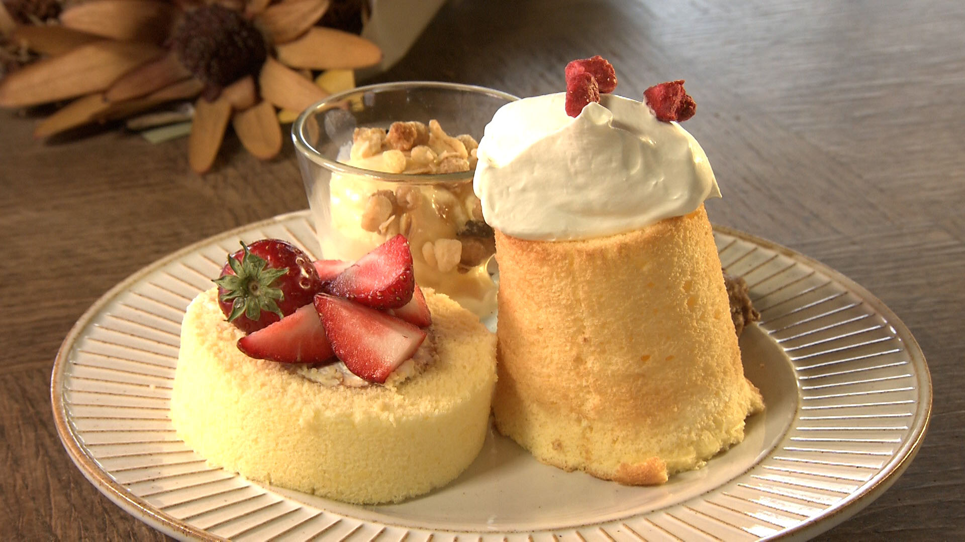 お菓子作りにも力を入れ、なかでもぷるぷるのシフォンケーキが大人気。