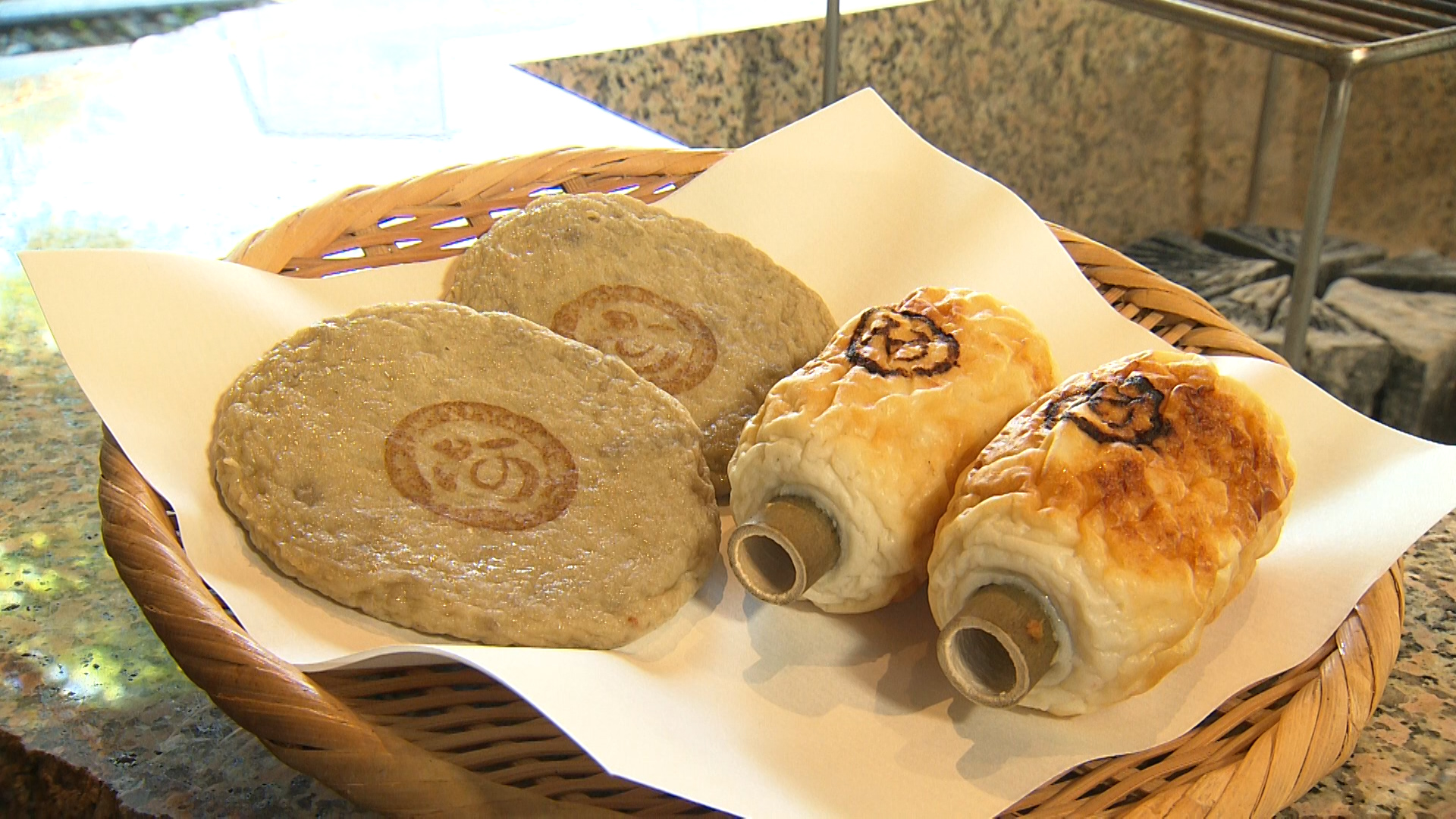 本店ではおよそ20種類の練り物が並ぶ。いちばん人気の鯛ちくわのほか鞆の浦名物のがす天はおやつだけでなく酒のつまみにも合うと人気。