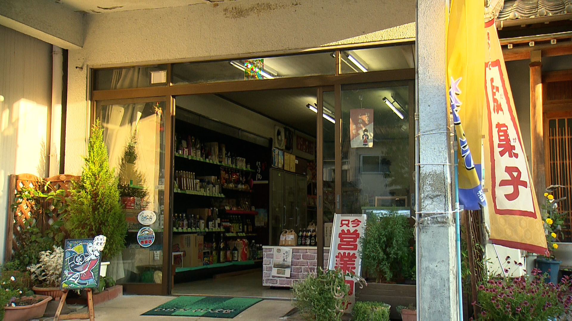 「どぶろく」「武蔵野里」「独歩」など岡山の名酒を多数揃える酒屋。駄菓子も販売しているので幅広い年代に親しまれている。