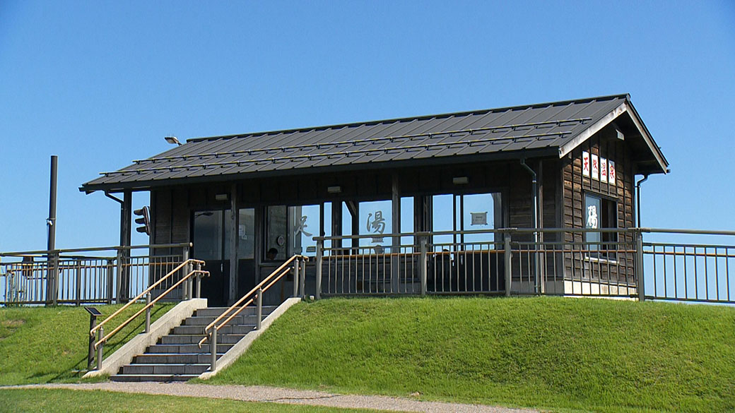 立山連峰の絶景を眺めながら天然温泉の足湯が楽しめる。