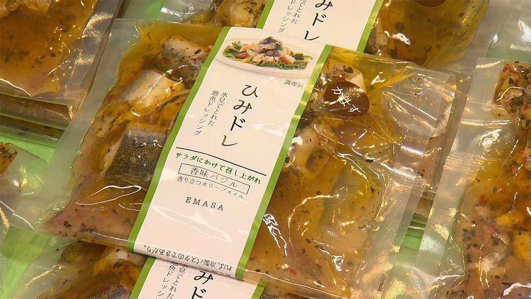 サラダやパスタに和えるだけのひみドレッシングが一番の人気商品。