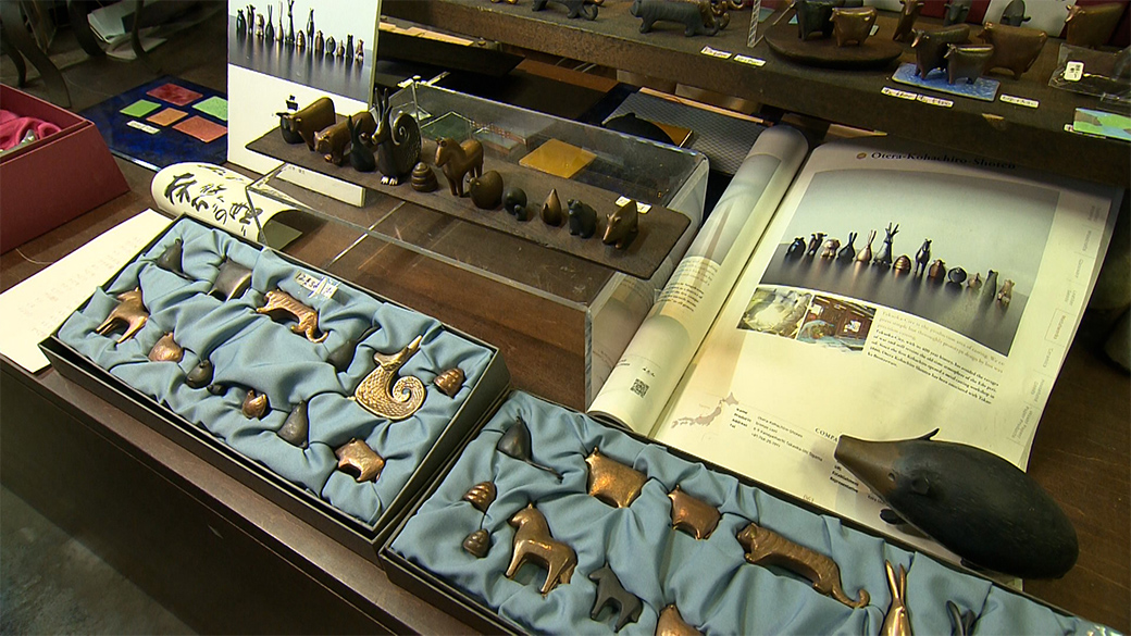 高岡銅器を中心に小物などを販売していて、ミニ干支のブロンズの置物がお店の看板商品。