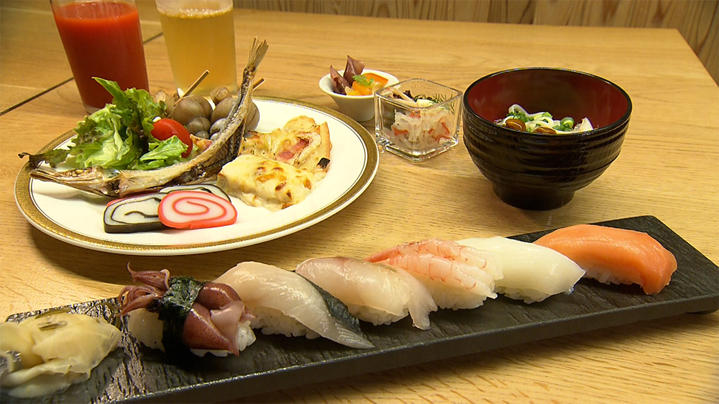朝から職人の握りたてのお寿司がいただけると人気。お寿司のほか富山名物も食べ放題。