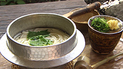 太めのそうめんを使った釜揚げは、適度な歯ごたえと