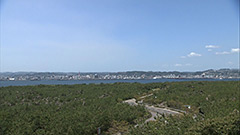穏やかな錦江湾、海へと続く溶岩原、雄大な桜島、
