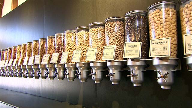 Going Nuts! 酒蔵跡にオープンした ナッツ専門店 店独自のブレンドで約50種類が並ぶ 【営業時間】 月~土 11:00〜18:00 日 12:00〜17:00 【定休日】 水曜日 ナッツ ドライフルーツ詰め放題:2,000円 ※詰め放題対象外の商品もあります 八幡ナッツバター 1グラム:8円 滋賀県近江八幡市仲屋町中21 TEL: 0748-43-1933