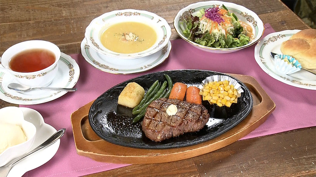 岩国で育てられた知る人ぞ知る高森牛のステーキが看板商品。