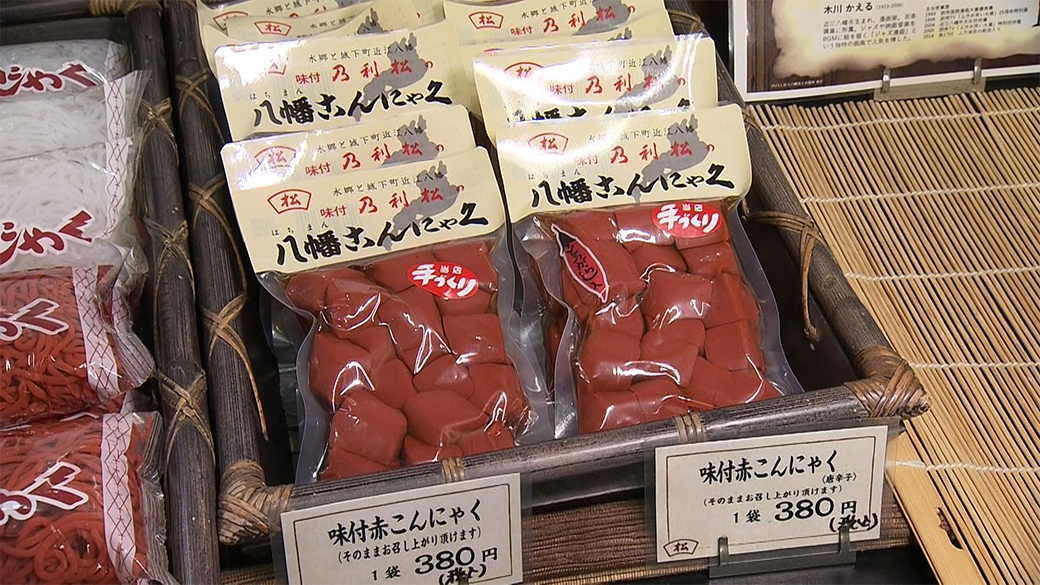 乃利松食品 吉井商店 滋賀の名物「赤こんにゃく」を 明治時代から製造販売しているお店 【営業時間】 8:00〜19:00 【定休日】 日曜 ・味付 赤こんにゃく(唐辛子):1袋 380円 ・こんにゃくかくれん棒:120円 滋賀県近江八幡市為心町21 TEL: 0748-32-2475