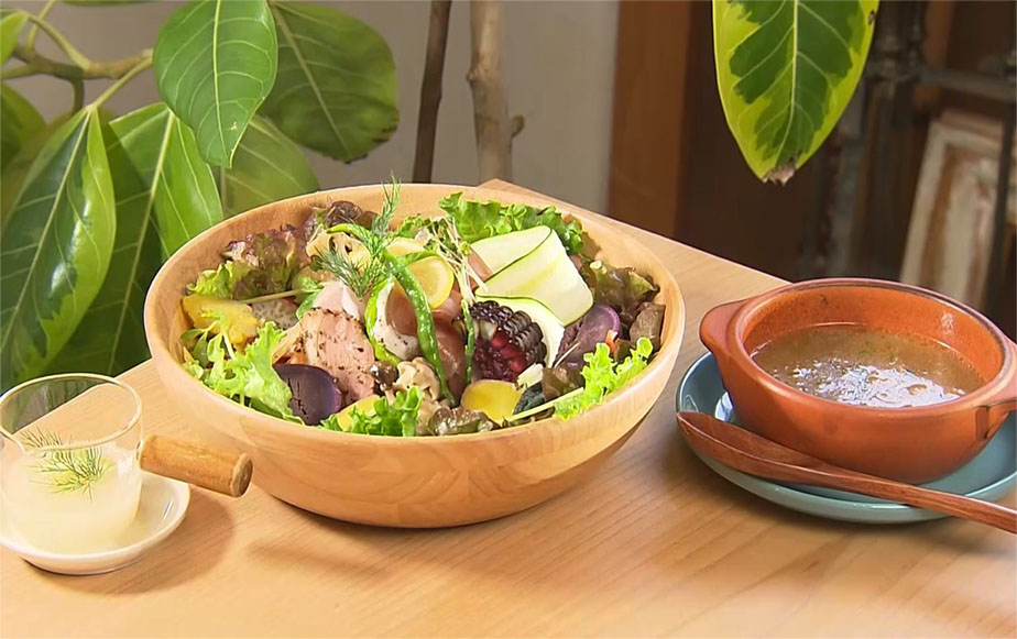 KOMINKA 壬 -みずのゑ- 古民家を再生した複合施設 【営業時間】 10:00 ~ 17:00 ※営業日・定休日は各店舗にお問い合わせください。 【穂谷野菜Caféツチノトイロハ】 ・合鴨と生ハムのサラダ+日替わりスープ 1,300円 大阪府枚方市穂谷2-6-1