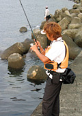 初日、まず二人がやってきたのは伊東港の防波堤。宮澤は潮に合わせて先端と根元を行ったり来たりして積極的に仕掛けていく。一方、辻原は動かない。まわりの動きを観察しながらイメージを組み立てていく。二人は別々の動きをしながら答えを絞り込んでいく。伊東での釣果は宮澤の1杯。
