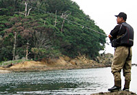 和歌山県友ヶ島は、紀伊半島と淡路島に挟まれた潮通しの良い島。関西では良く知られたシーバスフィールドだ。今回は、シーバスフィッシングのパイオニア・村越正海が、地元和歌山在住のルアーマン・中井一誠と久々にタッグを組み、友ヶ島を釣り巡る。 到着早々2人は地図を広げポイントを吟味。上げ潮を狙って、島の西端に向うプランを立てる。険しい岩場を歩き、崖を乗り越えること30分。ようやく辿り付いたポイントは、流れ、ベイトが十分。その上サラシもあり釣れる条件が揃っていた。期待を込め、ルアーをサラシに通す村越。すると一投目でヒット。中井も一投目で食わせた。やがて潮が変わりアタリが止まると2人は移動。潮の流れを読み、島の中央にあるなだらかな浜へやってきた。点の釣りから面の釣りに攻め方を変えるが、思うように食わない。 夕刻、下げ潮狙いで島の東端へ。そこでナブラに遭遇、中井がハマチを釣る。結局シーバスは釣れなかったが、明日からの釣りのヒントを掴んだ。 流れよりもサラシを重視した2人は、2日目の朝に再び西端を訪れる。が、サラシ不足。これから海は凪ぐ一方でサラシに期待は出来ない。残された条件は流れとベイト。2人はシーバスの影を追い、刻々と変化する潮に合わせ、足がつるほど友ヶ島をさまよい歩く。ルアーマンの執念は実るのか?