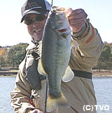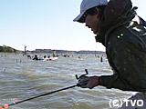 しかし午前中、満足のいく釣果はでないまま実釣終了となった…午後になって水温が2度上がって、活性も良くなってきた。ここで並木と宮崎は一気に攻勢をかける、並木はクランクからスピナベイトにルアーを変えてシャローを繰り返し狙う。