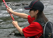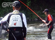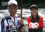 今回は、私自身3回目となりますアユ釣りです。「女の釣り道」シリーズは5回目となります。 かなり調子のいいおっちゃんの村田満さんと一緒に、ここ静岡県の興津川でアユ釣りをさせていただきました。満さんのお人柄でしょうか、ちょっと苦手意識のあった鮎釣りがかなり好きになりました。 釣果も自分で想像していたよりもかなりの数が釣れました。もちろん満さんの足下にも及びませんが。 取り込みがやっぱり一番心配していたところです。おととしの栃木での1回目、去年の「リバーウォッチング」宇治川での2回目、そして3年目の今回が3回目だったんですけど、一応、取り込みも着実に進歩はしてるかなと、本当にちょっとずつなんですけど、思いました。