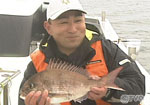 そんな中、最初にマダイを捉えたのは、早川。マダイ特有の強烈なヒキを楽しみつつ、アベレージサイズの1.5kgクラスを釣り上げた。