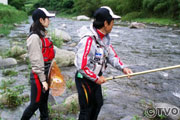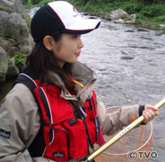 今回は敷居の高いイメージのあるアユ釣りに、ビギナーの女性でも楽しく挑戦してしまおう!という企画です。 一緒に釣りを楽しむお相手として、テレビ大阪の藁谷アナにきて頂きました。