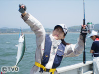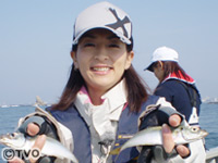 水野裕子の事務所へ届いた1通のビデオレター。東海大学海洋学部4年の小堀友理華さんから「卒業の思い出に水野さんと釣りをしたい!」という内容のものだった。 快く引き受けた裕ちゃんは、5月22日、小堀さんが中乗りの手伝いをしているという平塚・庄三郎丸を訪れると、小堀さんが大学で所属している釣魚部の仲間4人を引き連れて待っていた。東海大学の釣魚部は約40年前に創設された伝統クラブで、ボランティア活動も熱心に行っている。約40人いる部員の中で女子はわずか2人だけ。小堀さんは釣魚部のマドンナ的存在。この日も小堀さんの他は全員男子だが、小堀さん「自分が一番上手い」と。 |