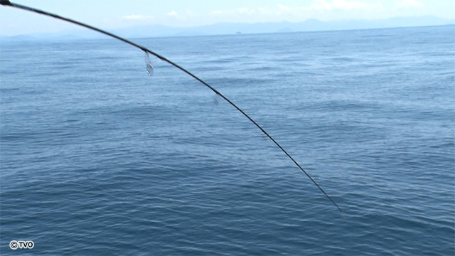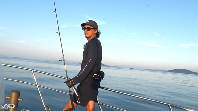 福岡県博多から出船。船を走らすこと約1時間半。壱岐島の近くでジグを落とす。この夏の時期は、水温が高いためなかなか魚たちは口を使ってくれない。その中で末永は、自分が決めた、ジグ、ロッド、リールの組み合わせでこの日、魚に合う組み合わせを探る。