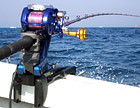 3月20日朝6時、港を出船。約40分でポイントに到着。既に何隻もの船が集まり、竿を曲げていた。出遅れてはならないと2人も急いで実釣開始。ここのアジ釣りは、10本針のサビキ仕掛けの下にオモリのついたカゴをつけ、マキエで魚を寄せて釣る。初心者でもすぐにできるいたってシンプルな釣りだ。