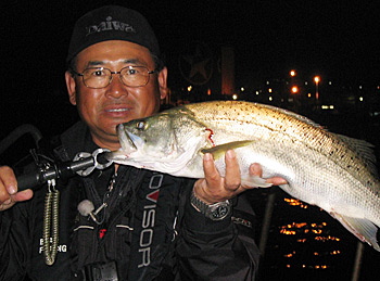 翌、18日午前3時。釣行スタート。まず青衣島のバース周りから攻める。シンキングミノーで水面下60cmを探る。するとヒット!75cmの丸々とした一尾。早々に香港シーバスとの対面を果たした村越だったが、その後はアタリなし。やがて、そのまま朝を迎えた。しかし、あまりにも船の往来がはげしく日中は釣りにはならない。勝敗を賭けてその夜10時、再びビィクトリアハーバーへと向かう。果たして、結果やいかに。 |