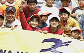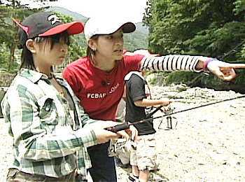 いよいよ到着。宮本プロからレクチャーを受け、3班に分かれてスタート。手慣れた手つきで悠々と投げる子もいれば、なかなかルアーを前に飛ばすことができない子も。あちこちで魚が釣れた声があがる。大喜びする子どもたち。やはり来たからには釣らせてあげたい、裕ちゃんも一生懸命アドバイス。お昼は皆でお弁当を食べ、楽しい時間は過ぎて行く。今回裕ちゃんは子どもたちにアドバイスをしているが、皆の釣りを見ていて、ついついちょっとだけとタックルを手に。しかし日も高くなり食いが渋い。横では中1の男の子が大人顔負けのテクニックでどんどん釣り上げている。たじたじの裕ちゃん。