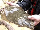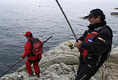![]() 秋から冬にかけて瀬戸内海ではカレイ釣りが旬を迎える。今回は投げ釣りのエキスパートが、攻めのカレイ釣りを披露。アングラーは、愛媛在住の渡部祐司と大阪在住の中本嗣通。2人はシーズン初期に実績の高い愛媛県の怪島に上がる。ともに竿3本出して狙うが、攻め方は異なる。渡部は潮上から遠投、中投、近投と投げ分け、潮の流れによって同じ藻の周辺に3つの仕掛けが揃うようにする。 藻は産卵期のカレイが集まる場所。一方この釣場がはじめての中本は、渡部に地形を聞き最初からピンポイントに仕掛けを投げ入れる。しばらくして中本がカレイをヒット、が、釣果はこの一尾だけ。というのもベラやフグなどエサトリの活性が高く、カレイが食う前にエサトリがエサをとってしまうからだ。2人は時間を置いて再挑戦することにした。 一週間後、2人はエサトリの少ない松山の興居島に上がる。海底はなだらかな砂地。地形を探り、カケアガリを狙う。やがて渡部が41cmのカレイを釣る。いわゆる座布団ガレイだ。そして中本も33cmをヒット。出直した甲斐があった。 |