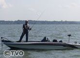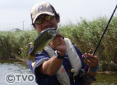 9時頃をまわるとアタリが!!さすが本場アメリカで活躍しているプロバサー。早くも1尾目を釣りあげた。アングラーにとって最も大事となる1尾目を釣り上げ、エンジンがかかるものと思われた並木だが、その後は思う様に調子が上がらない。14時頃までに3尾を釣り上げたが、それ以降はストップ。結局日没とともに実釣は終了。わずか3尾の釣果に不満が残った。