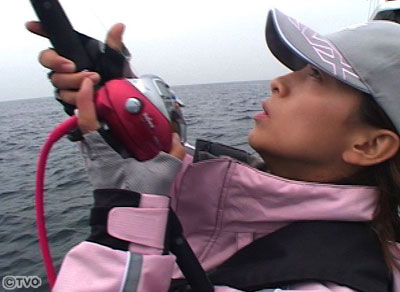 ここで「極意その三」が出された。今度は「取り込み」だ。ラインを緩めず、体全体を使い、一連の動作を止めずに行うようにと、大塚師匠から教えられる。熱血指導を受け、がんばる裕ちゃん、さあ、釣果はいかに!?