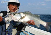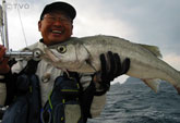 1投目からアタリがあるものの、魚のサイズに比べてルアーが大きいためかフッキングしない。が、特大サイズを狙いたい村越はルアーを変えない。そして10発ほどバラシた後にようやくヒット。60cmクラスだった。その後、甑島をテンポ良く回り平均50~60cmのヒラスズキを5尾上げる。餌をたらふく食っているのか、どれも長さにしては厚みがありずっしりと重い。8kgオーバーも夢ではないと確信し、初日を終えた。
