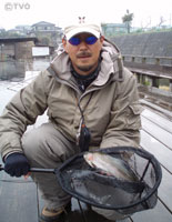 翌日、雨の中の柿田川フィッシングストーリーで再トライ。中間色→暗い色→明るい色・・・と前日とパターンを変えてスプーンを試す。すると色を変えた瞬間に魚がアタック。が、2投目、3投目と同じ色を引き続けると魚もスレていく。このパターンがずっと続いた。カラーを試した後は、レンジ(層)を見る。水深は約2m。上から下まで魚は満遍なくいるのに、表層と中層は反応が悪く、底層で食ってくる。