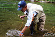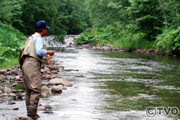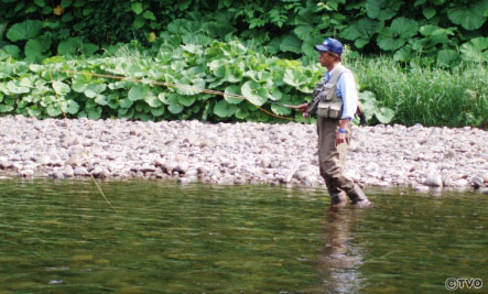 淡い緑、深い緑と緑豊かな美しい尻別川で、フライフィッシングを満喫する。