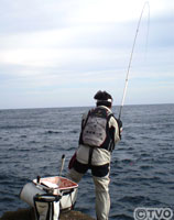 この日のコンディションは北東からの風がやや強く、東向きに釣り座をとった二人に向かって吹き付けていた。