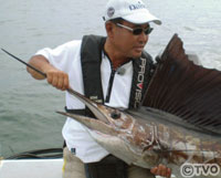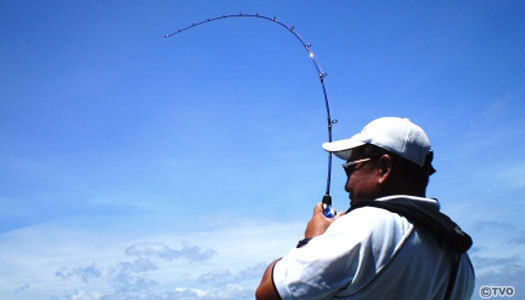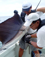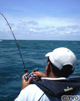 ![]() セイルフィッシュをルアーで狙う場合の最大の難関がフッキング(針掛り)。なぜならフッキングポイントがたった2ヶ所しかないからだ。カンヌキと呼ばれる口の端と、くちばしの内側の根元付近。それ以外に掛かるとことごとく外れてしまう。運よくフッキングしても、大抵はファイト中のジャンプで外れてしまう。 ![]() ポイントに到着した村越は、鳥山を狙う。魚の居場所は鳥が教えてくれる。村越はポッパーのテールにシングルフック、ボディにシングルフックを二つ束ねた蝶々針をセット。トレブルフック(3本針)のように針数が多いと、かえって針が邪魔をし、フッキング率が悪い。 ![]() 釣りを始めて間もなく、ポッパーの後を追う黒い陰が現れる。セイルフィッシュだ。くちばしを海面に突き出し、ポッパーを食おうとする。それを見て村越がアワセた。が、フックオフ。その後何度もバイトしてくるが、どうしても掛からない。アワセが足りないと感じた村越は、力いっぱいアワセるが逆にリーダーがこすれて切れる。 村越、どうする!? 新春特別企画。息詰まるセイルフィッシュとの駆け引き!!お楽しみに。 |