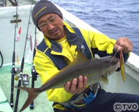 そして二日目。昨日と打って変わって釣り始めからカンパチの連発に大盛り上がり。栗山には9キロオーバーの、この時期としてはまずまずいいサイズまで飛び出した。