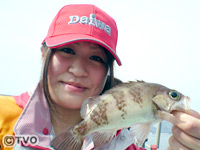 ここでは、海底にいるメバルをサビキで狙う。最初にヒットしたのは石田さん。そして、山田さん、水野と連続ヒット。その後、同時に2尾は当たり前で水野が3尾、石田さんが4尾を同時に釣り上げた。結局、水野・石田さん・山田さんの3人で50尾以上の釣果を上げた。 陸からも沖からも水野裕子大満足の結果となった。 |