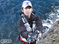 アングラーは、メジナ釣りのエキスパート森川芳郎と濱田修司。以前2人は釣りのカタログの撮影で意気投合、今回、森川のホームグラウンドである伊豆半島で1年ぶりに再会した。 |