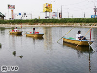 ボートを固定させ、ようやく釣り開始!横利根川は、辺り一帯を田園風景に囲まれた水郷地帯となっており、自然の中での釣りを満喫できる。 |