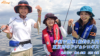 手軽で簡単!楽しい船釣り入門!東京湾の人気ターゲット、アジとシロギスをライトタックルで狙う。アングラーは、SFA・秋丸美帆と、女性プロアングラー・児島玲子、5代目アングラーズアイドル・石川文菜の、釣りガール3人。