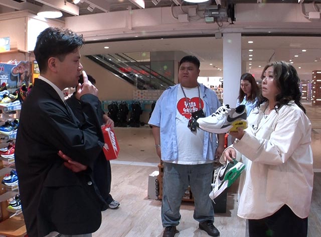 日用品を買うためにコクミンドラッグでお買い物する5人。