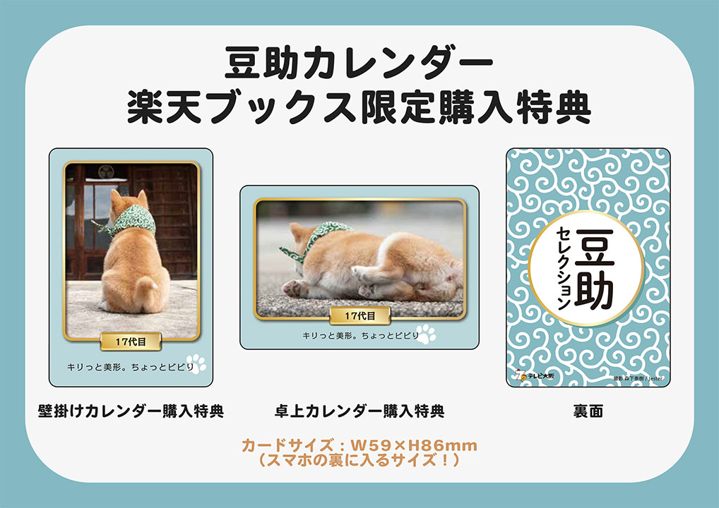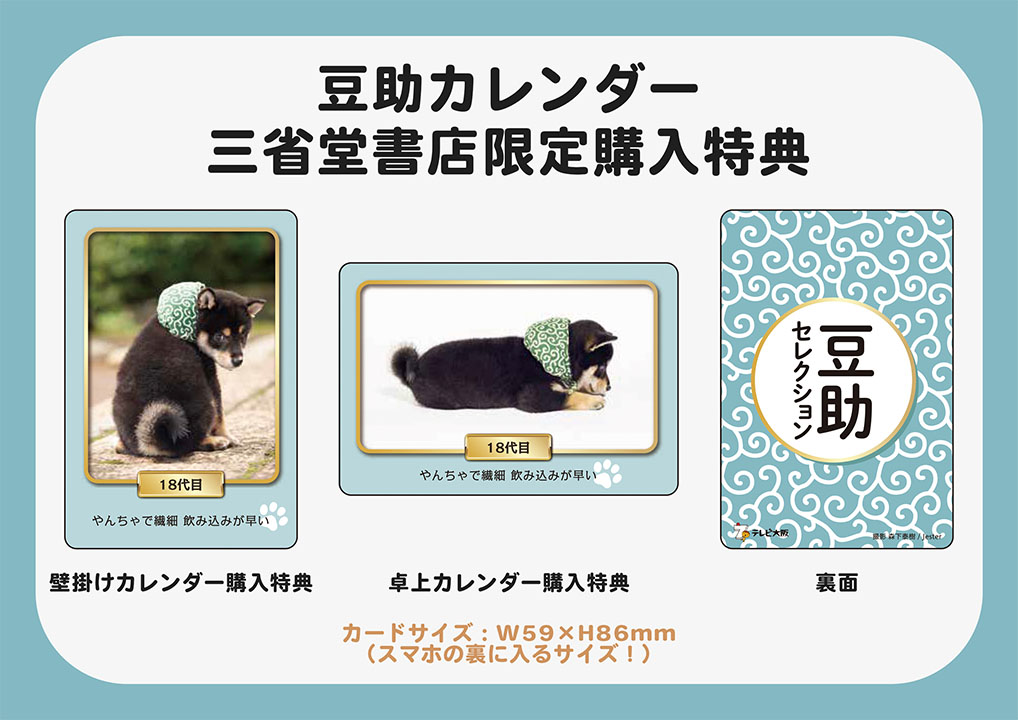 楽天ブックス、三省堂書店でご購入いただけると、壁掛け版と卓上版で別絵柄、合計4種類のトレーディングカードをもれなくプレゼントいたします。