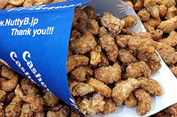 - ローストキャラメルナッツ、カシューナッツ、アーモンドナッツ、ピーナッツ、