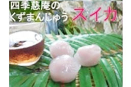 - 一口サイズの和菓子・夏らしく葛まんじゅうを(1個25g)。味は小倉・抹茶・桜・スイカ・ブルーベリー・紫水晶(芋餡)・柚子と揃えております。商品はお客様に選んで入れていただけます。