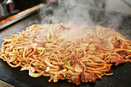 - 大たこやき、お好み焼き、但馬牛すじ焼きそば、オムそば