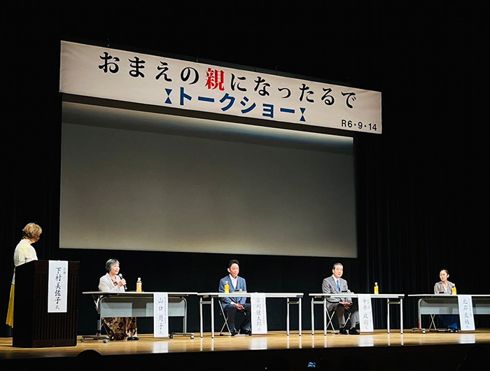 映画上映後、日本財団「職親プロジェクト」代表・中井政嗣氏(千房・会長)、映画の主人公・草刈健太郎氏(カンサイ建装工業 代表取締役)、本作品の北岸良枝監督とともに、阿倍野地区保護司会副会長の山口周子さんが登壇。600人の来場者とともに、再犯防止に向けた取り組みへの理解・協力の在り方ついて、議論を深めました。