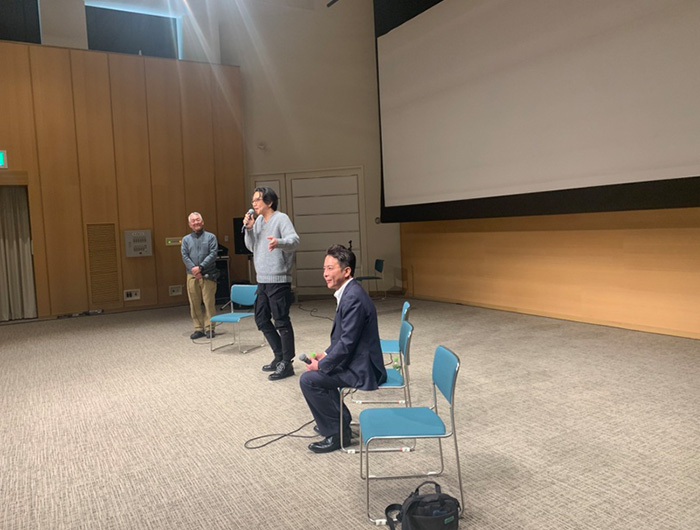 今回のシンポジウムでは、元受刑者の2人に1人が再び罪を犯す背景に、社会的に孤立している点に、主催者が着目。障碍者・生きづらさを抱えた人たち、そして元受刑者の更生を支えるための地域の在り方を考えるために企画されました。シンポジウムでは、岡山マインド「こころ」の多田伸志理事長司会のもと、映画の主人公・草刈健太郎氏(カンサイ建装工業 代表取締役)、北岸良枝監督・花本憲一プロデューサーが登壇。草刈さんから犯罪被害者家族でありながら更生支援を続けている思いが語られた後、来場者と対話形式によるトークセッションへ。誰一人、孤立させない地域づくり・つながりを持つ大切さに向けて、来場者と議論を深めました。