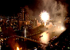 はるか千年の昔、菅原道真公の御霊(みたま)を鎮める為に始まった大阪天満宮の夏大祭。